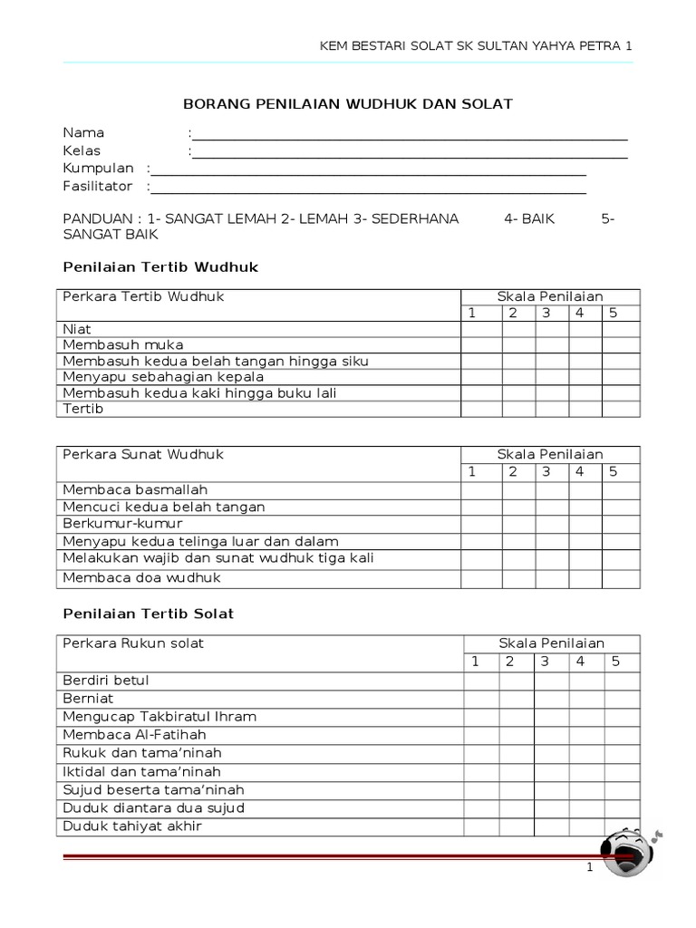 Contoh Borang Penilaian Kem Bestari Solat / Borang Penilaian Kem Bestari Solat : Kem bestari solat sk tongkalloh 2016.. Kertas kerja kem bestari solat. Sebagai contoh, pernah bayu mengajak ayahnya bermain badminton saat akhir pekan, namun ayahnya tak bisa karena ada pekerjaan kantor yang deadline dan harus dikerjakan di rumah. Solat merupakan satu tuntutan wajib yang penting bagi setiap individu yang bergelar muslim. Pembantu eksekutif (yes / no scale). Savesave 60749293 borang penilaian kem bestari solat for later.