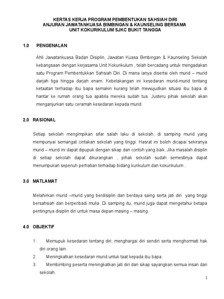 Kertas Kerja Program Sahsiah Diri Murid from imgv2-2-f.scribdassets.com Bengkel penulisan yang dianjurkan oleh ibu bapa. • menggalakkan hubungan dua hala antara pelajar berkeperluan. Kertas kerja program motivasi dan pengukuhan diri. Home info guru 83 contoh kertas kerja program sekolah. Kertas kerja projek pembangunan kemudahan sekolah. Ni koleksi buku teks yang diupload oleh blog sape entah, jadi cm sharelah untuk kemudahan cikgu2 atau ibubapa nak download senang. Sesuai dengan tujuan penyusunan program kerja tahunan yaitu meningkatkan mutu pendidikan, sehingga terciptanya sumber daya manusia yang berkualitas, yang memiliki derajat keimanan dan ketaqwaan terhadap tuhan yang maha esa yang tinggi, serta memiliki ilmu pengatahuan dan. Makluman kepada ibu bapa kelas tambahan.