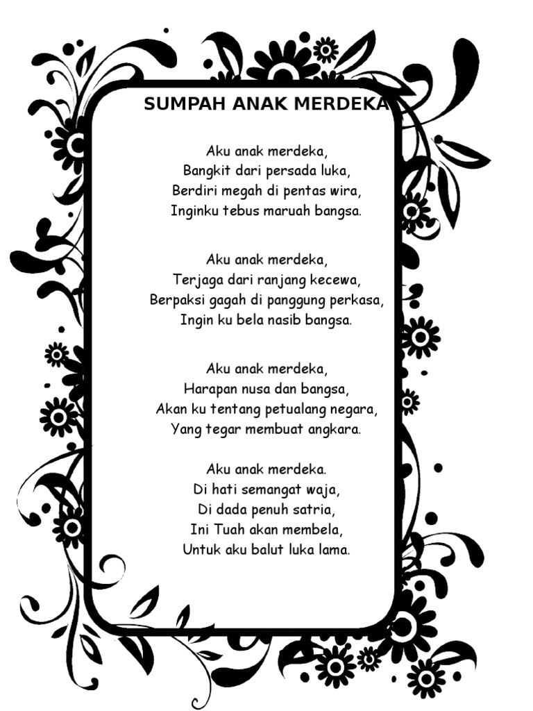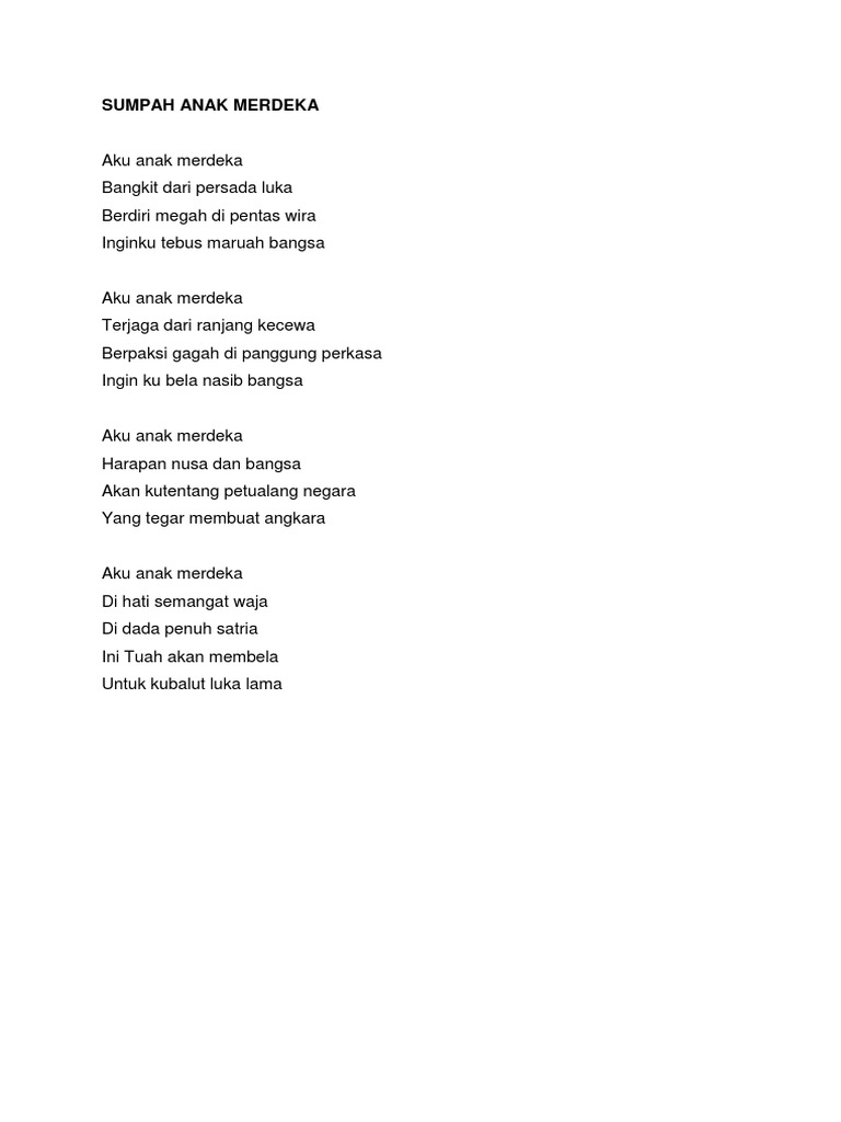 Sajak Sumpah Anak Merdeka - Lembaran Kerja Docx Document / Sumpah anak merdeka mp3 duration 1:46 size 4.04 mb / zaidi ahmad 21.. Film semi hot jadul indonesia bikin h0rn1 jgn skip nnti nyesel sumpah720p. Pinokkiyo offical 1 month ago. Aku anak merdeka bangkit dari persada luka berdiri megah di pentas wira inginku tebus maruah bangsa. Rabu, ogos 21, 2013 unknown. Kita adalah manusia berbangsa dan bernegara!