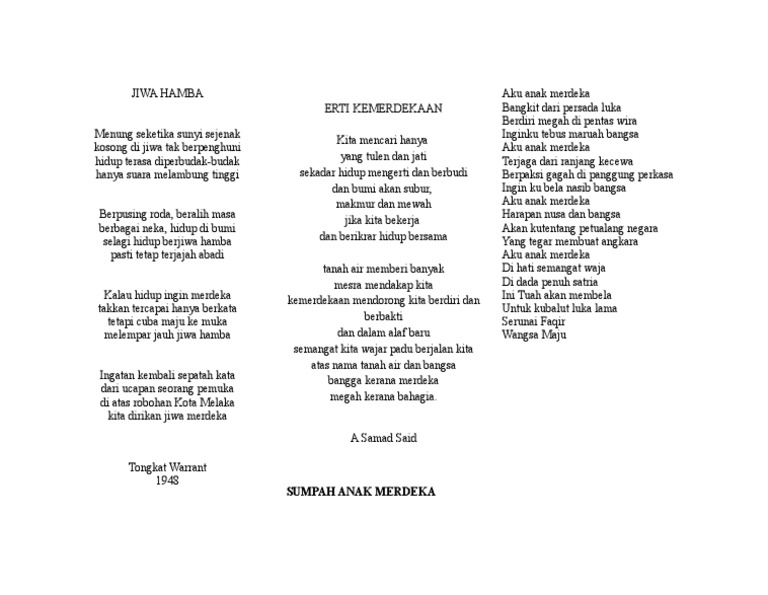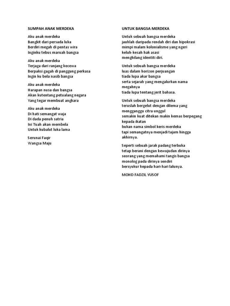 Sajak Sumpah Anak Merdeka - Lembaran Kerja Docx Document / Sumpah anak merdeka mp3 duration 1:46 size 4.04 mb / zaidi ahmad 21.