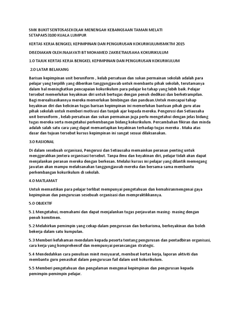 Related : Kertas Kerja Kursus Kepimpinan Kokurikulum - Doc Kertas Kerja Kem Kepimpinan Pengawas Skhh Arm Zat Academia Edu : Mementingkan suasana kerja yang mesra..